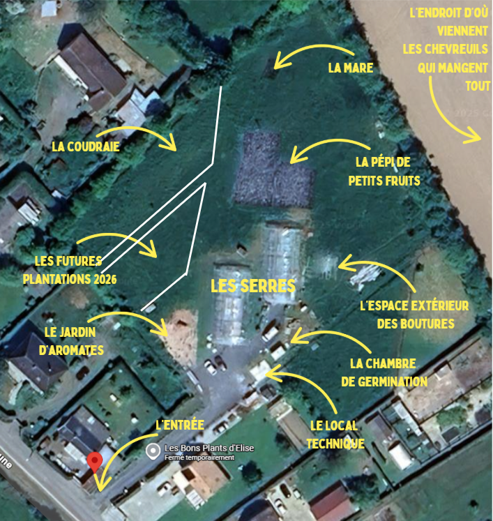 Nous proposons aussi une gamme de vivaces dont les boutures sont issus des pieds-mères plantés dans notre Jardin d’Aromates, et nous proposerons dès 2027 une gamme de 24 variétés de petits fruits (cassis, framboises, casseilles, groseille, …) grâce à notre pépinière de petits fruits plantée en 2025.